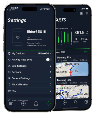 簡単な設定で、記録はSTRAVA、TrainingPeaks、Komootに自動的に同期されるため