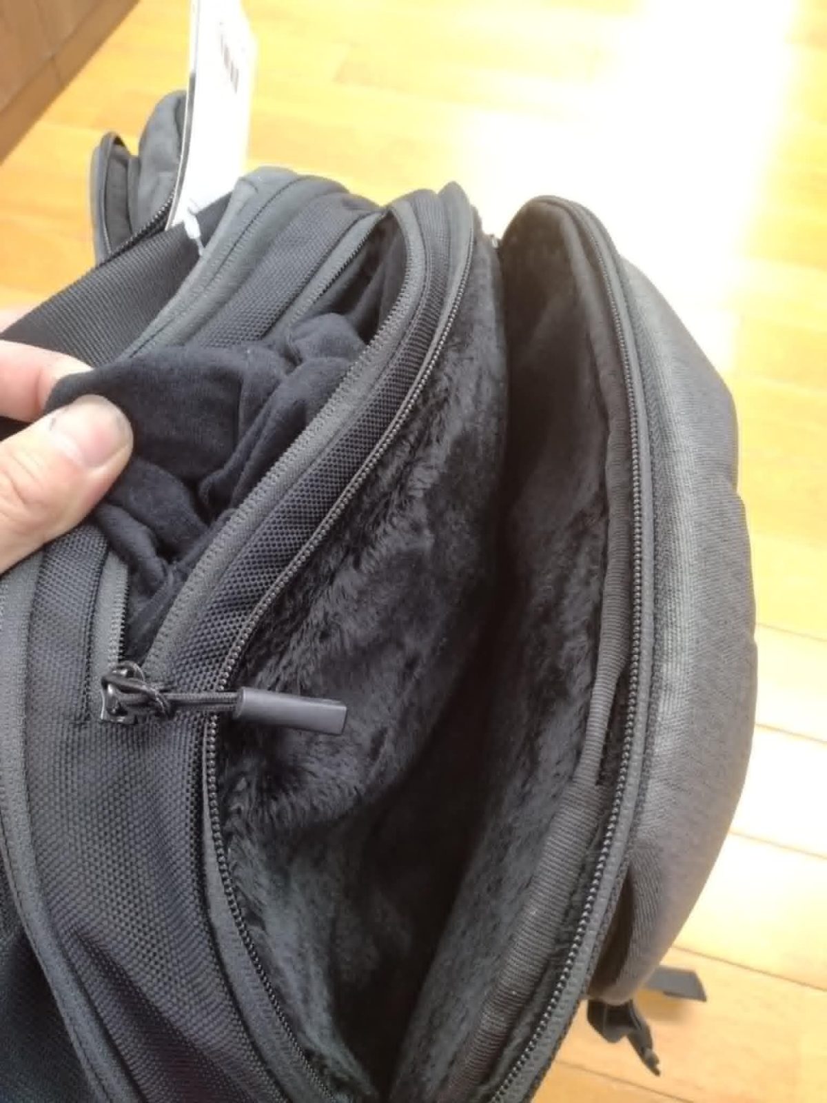 背面にPCやアイパッド用のポケットとサングラス用ポケット。モフモフです!!