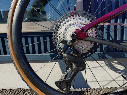 スプロケットはマウンテンバイクと同じ10-51t。フロントギアの選択によっては激軽ギアのセットアップも可能です。