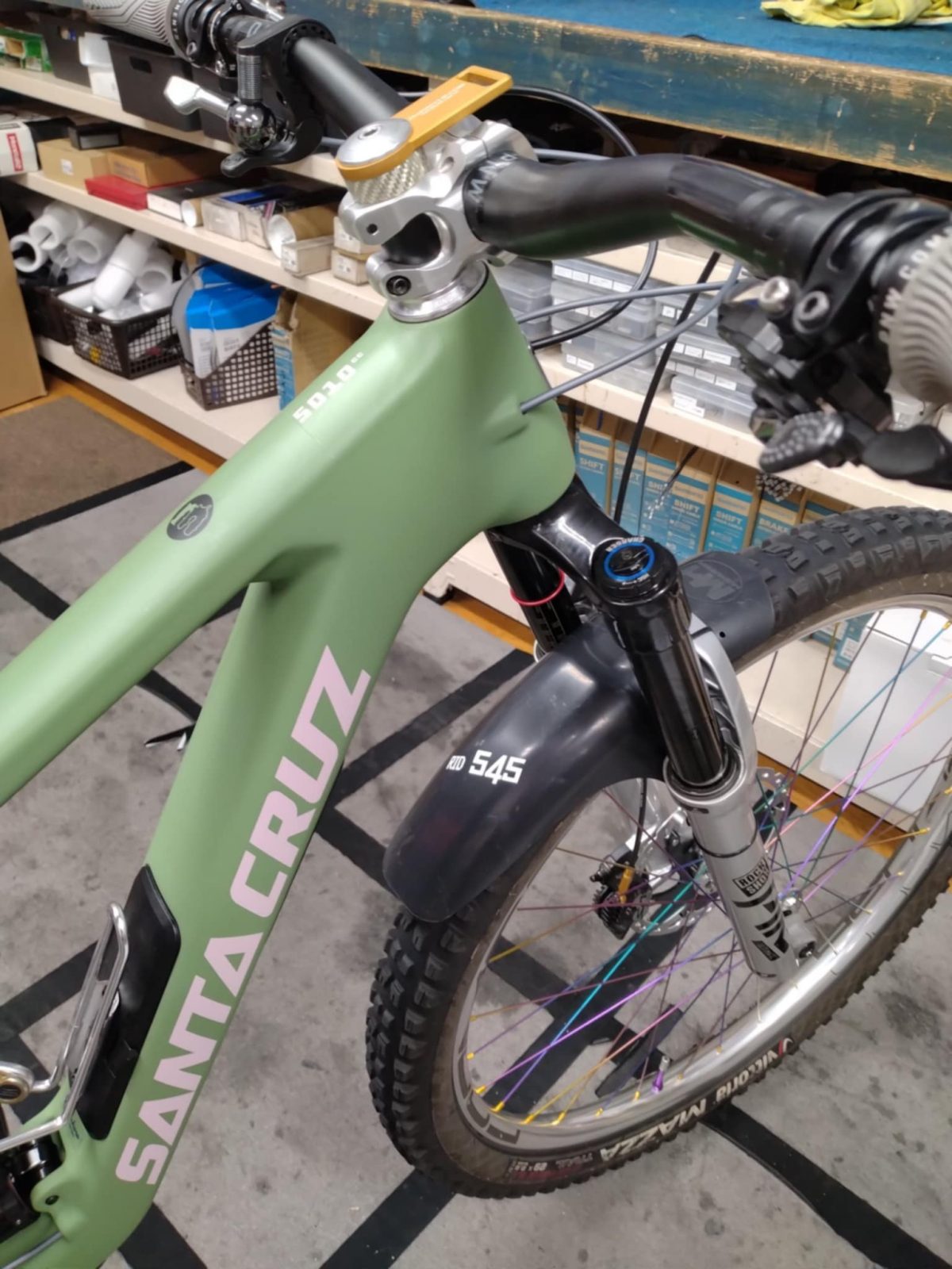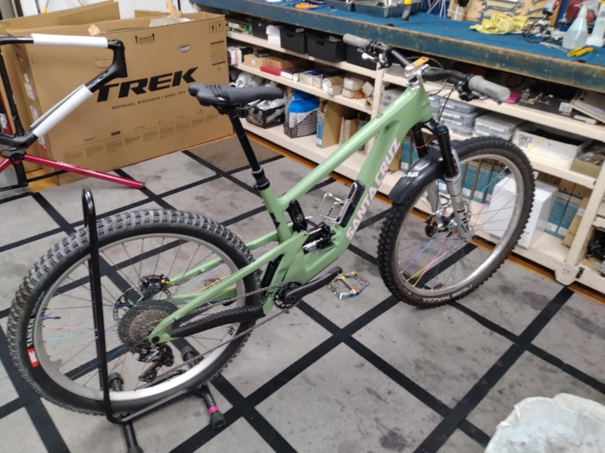 フロント140mm、リア130mmのマレットフルサスバイク5010。サンタのVPPリンクがあいまって、トレイルを遊び尽くすポテンシャルが詰まったバイクです!